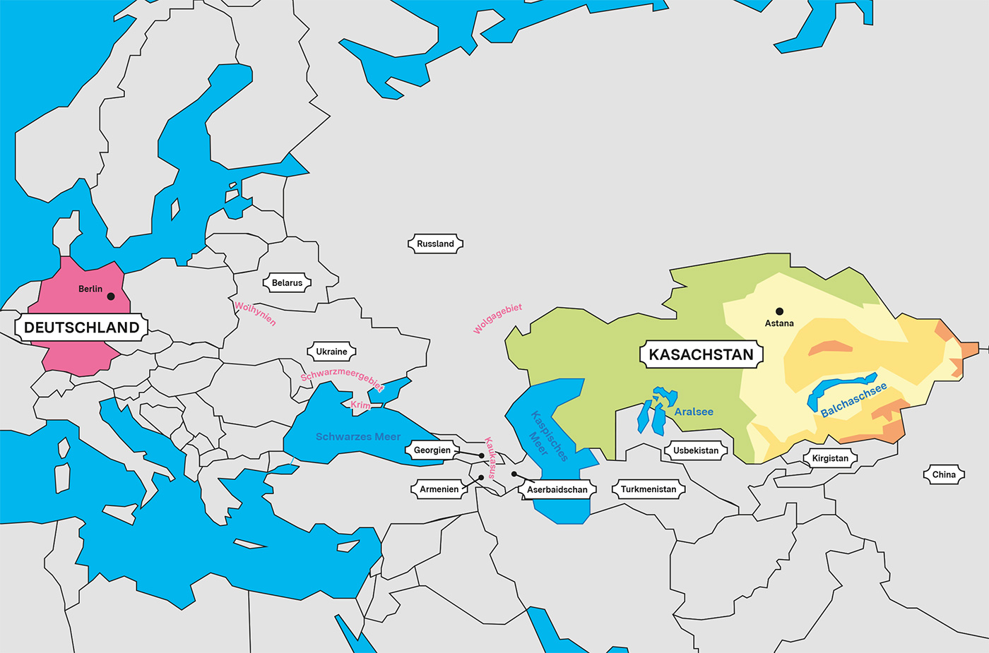 Vor allem seit dem 2. Weltkrieg wurden Deutsche, die seit Jahrhunderten an der Wolga gelebt hatten – aber auch Deutsche aus dem Schwarzmeerraum, aus dem Kaukasus, von der Krim und aus Wolhynien – nach Kasachstan zwangsumgesiedelt und verbannt. Oft mussten sie Zwangsarbeit in sowjetischen Arbeitslagern verrichten.